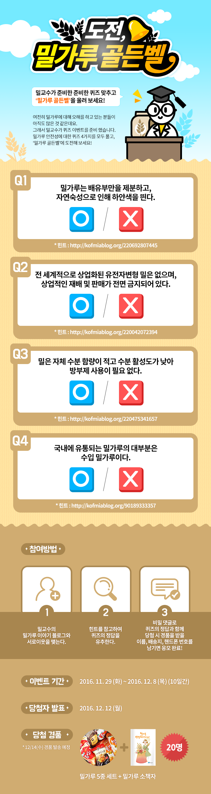 ¿À´Ã³¯ ¹Ð°¡·ç¿¡ ´ëÇØ À߸øµÈ ÀνÄÀ¸·Î ¹Ð°¡·ç´Â ¸Ö¸®ÇØ¾ß ÇÏ´Â À½½ÄÀ¸·Î ¿©°ÜÁö°í ÀÖ½À´Ï´Ù. ÀÌ·± À߸øµÈ ÀνÄÀ» ¹Ù·Î Àâ±â À§ÇØ ¹Ð±³¼ö°¡ ¿À·§µ¿¾È ¹Ð°¡·ç´Â ¾ÈÀüÇÏ´Ù´Â ¸Þ½ÃÁö¸¦ °è¼ÓÇØ¼ Àü´ÞÇϰí ÀÖ¾ú´Âµ¥¿ä. "°ú¿¬ ¿ì¸® ÀÌ¿ôºÐµéÀº ¹Ð°¡·ç¿¡ ´ëÇØ ¿Ã¹Ù¸£°Ô ¾Ë°í ÀÖÀ»±î?" ÇÏ´Â ±Ã±Ý¡ÀÌ »ý°Ü, ¹Ð±³¼ö°¡ <µµÀü, ¹Ð°¡·ç °ñµçº§>À» ÁøÇàÇÏ·Á°í ÇÕ´Ï´Ù. ¾Æ·¡ÀÇ Áú¹® 4°¡Áö¸¦ º¸½Ã°í, ÄûÁîÀÇ Á¤´äÀ» ¸ÂÃ纸¼¼¿ä! Á¤´äÀ» Àß ¸ð¸£°Ú´Ù¸é ÈùÆ®·Î Á¦°øµÈ ¸µÅ©¸¦ »ìÆìº¸¸é ½±°Ô ¸ÂÃâ ¼ö ÀÖ´ä´Ï´Ù. <µµÀü, ¹Ð°¡·ç °ñµçº§> Áö±Ý ½ÃÀÛÇÕ´Ï´Ù!