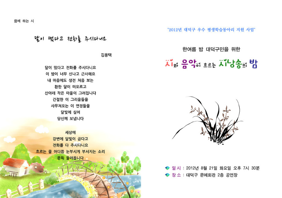 ½Ã¸¦ »ç¶ûÇÏ´Â »ç¶÷µéÀÌ ¸ð¿© ½Ã¸¦ ³¶¼ÛÇÏ°í °÷°÷¿¡ °¡¼­ ½Ã¸¦ µé·ÁÁÖ°í